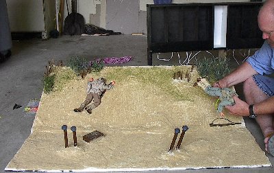 Here is the final setup - note the base has had some more grass and foliage work. The display boxes are painted (with the spot for the D-Day spirit painted in white). |