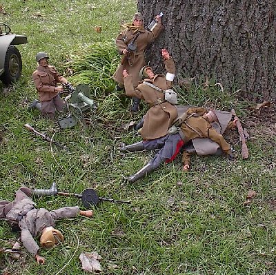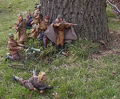 The cavalry wheels and darts past the hidden Russian squad - the German patrol bites - and persues! |