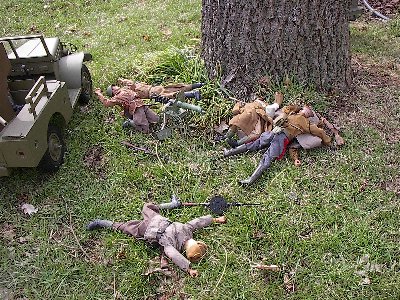 The Soviet squad immediately begins to take casualities ... the Captain hovers over the body of the fallen woman sniper, trying to provide a human shield while the medic rushes to her aide ..... |