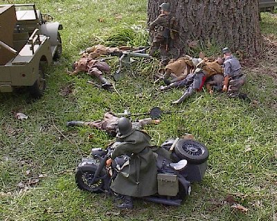 The German tanks roll on, spewing fire and death from their cannons like some ancient, mechanical beast told in some childhood horror story ... |