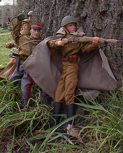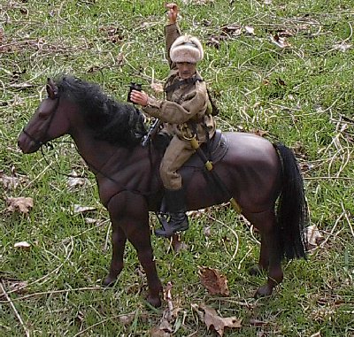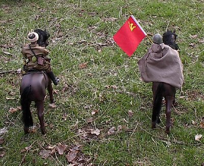 | Two mounted Cossack Cavalry riders will act as decoys - trying to lure the German patrol into their ambush. | ![]() |